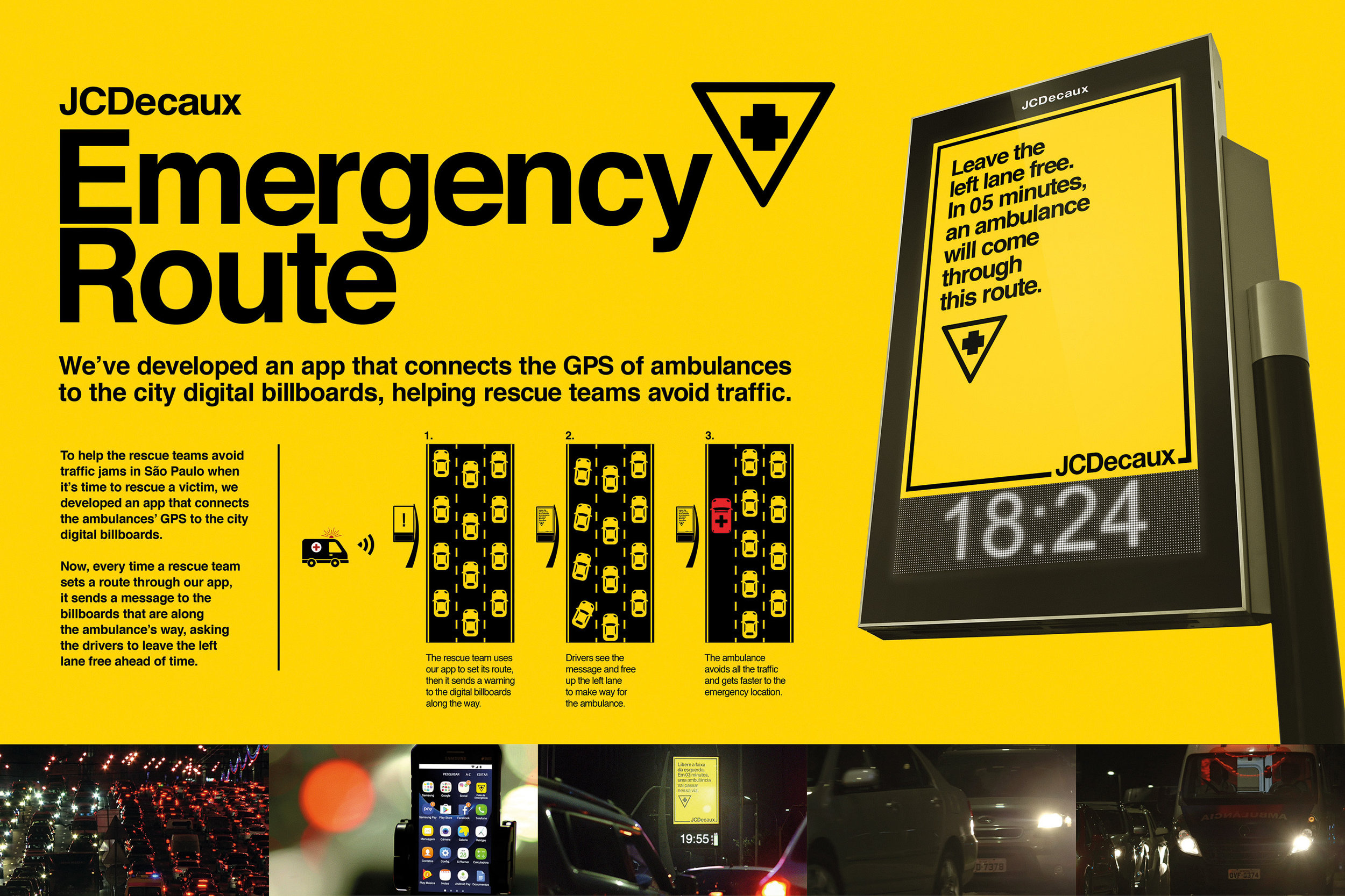 “Emergency Route” for JCDecaux. Recognition: Cannes Lions Gold Outdoor / Cannes Lions Bronze Outoor / Cannes Lions Bronze Media // Andy Awards Idea // Andy Awards Reset // Andy Awards Top #4 2019 D&AD Direct / Direct Response/Ambient